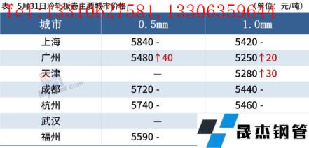 冷軋板卷:5月31日,全國24個主要城市1.0mm冷卷均價5434元/噸,較上個交易日上漲6元/噸。由于本月無縫厚壁鋼管廠家結算多不理想,與市場價格形成倒掛,再加上需求持續(xù)疲軟,現(xiàn)貨市場跟漲動力不足,商家多以穩(wěn)價出貨回籠資金為主,今日整體成交表現(xiàn)一般。據(jù)悉,上海6月1日倉庫取消通行證提貨要求,倉庫有望恢復正常加工提貨,由于臨近解封,上海市場觀望情緒較為濃厚,悲觀情緒有所改善。預計1日國內冷軋板卷價格或將震蕩運行為主。