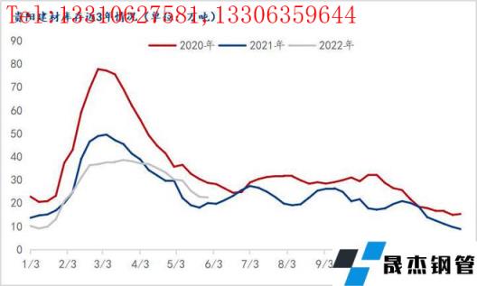 截至5月31日,貴陽建筑厚壁無縫鋼管社會庫存22.73萬噸,較上周增加0.48萬噸,增幅2.16%,較去年同期高出4.4萬噸,增幅達24.32%。5月中上旬貴陽價格處于洼地,資源大量發(fā)往周邊川渝、廣西、湖南等高價區(qū)域,去庫速度加快,隨著貴陽與周邊區(qū)域價差修復(fù),5月下旬貴州鋼價逐步高于重慶、廣西地區(qū),貴州周邊工地開始從廣西、重慶區(qū)域調(diào)貨,廣西、云南資源再度流入貴州區(qū)域,貴州庫存不降反增,高于去年同期。