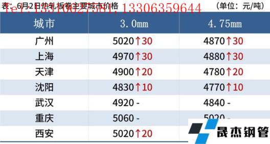 6月2日,國(guó)內(nèi)厚壁無縫鋼管市場(chǎng)價(jià)格偏強(qiáng)運(yùn)行,唐山普方坯出廠價(jià)漲30報(bào)4500元/噸。2日午后,黑色期貨強(qiáng)勢(shì)拉漲,現(xiàn)貨報(bào)價(jià)繼續(xù)上揚(yáng),下游剛需采購(gòu)活躍,交投氛圍濃厚。