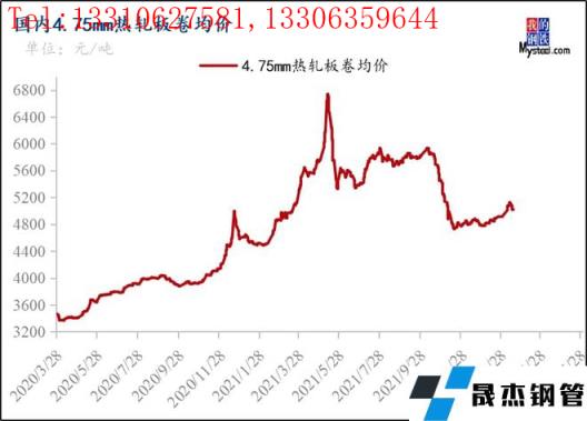 圖5:國內(nèi)4.75mm熱軋板卷均價(jià)走勢圖