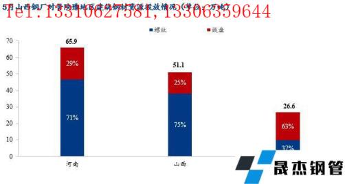 在統(tǒng)計(jì)的11家山西無(wú)縫厚壁鋼管廠(chǎng)家中,5月份向晉陜?cè)サ貐^(qū)建筑厚壁無(wú)縫鋼管資源投放總量為143.6萬(wàn)噸,其中螺紋94.6萬(wàn)噸,占比為66%,線(xiàn)盤(pán)49萬(wàn)噸,占比為34%。分區(qū)域來(lái)看,對(duì)山西地區(qū)投放51.1萬(wàn)噸,占比為36%;對(duì)河南地區(qū)投放65.9萬(wàn)噸,占比為46%;對(duì)陜西地區(qū)投放26.6萬(wàn)噸,占比為19%。據(jù)數(shù)據(jù)顯示,5月份山西無(wú)縫厚壁鋼管廠(chǎng)家向晉陜?cè)サ貐^(qū)投放建筑厚壁無(wú)縫鋼管資源總量較4月份增加24.27萬(wàn)噸。分區(qū)域來(lái)看,5月對(duì)山西地區(qū)的投放增量最大,主要是山西區(qū)域價(jià)格持續(xù)高于周邊市場(chǎng),山西省內(nèi)資源多在省內(nèi)消化為主。