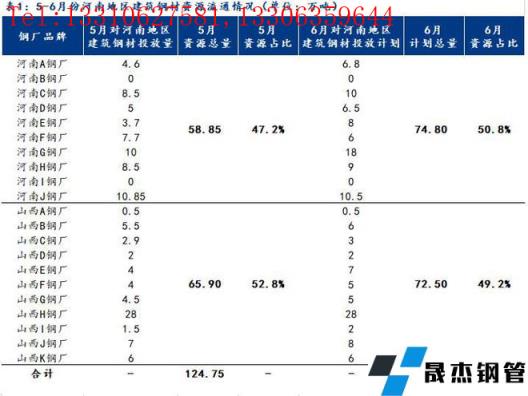 從計(jì)劃投放量來(lái)看,在統(tǒng)計(jì)的11家山西無(wú)縫厚壁鋼管廠(chǎng)家中,6月份計(jì)劃向晉陜?cè)ナ袌?chǎng)投放建筑厚壁無(wú)縫鋼管資源總計(jì)168萬(wàn)噸,較5月份投放量環(huán)比或增加11.3萬(wàn)噸。其中,6月份計(jì)劃向山西地區(qū)投放62萬(wàn)噸,河南地區(qū)投放72.5萬(wàn)噸,陜西地區(qū)投放33.5萬(wàn)噸。
