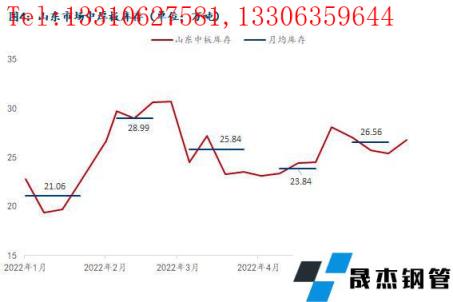 山東市場中厚板庫存最近一期(6月2日)調(diào)研數(shù)據(jù)為26.81萬噸,周環(huán)比上漲1.37萬噸,較上月均值上漲0.25萬噸。