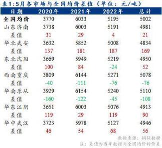 據(jù)鋼聯(lián)數(shù)據(jù)對各區(qū)域主流市場及全國均價的5月價差數(shù)據(jù)分析:山東、東北今年價格較全國平均水平有所抬升,華北、華南、華東、華中較全國平均水平有所下降;