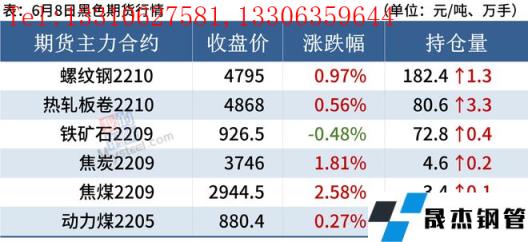 熱軋板卷:6月8日,全國(guó)24個(gè)主要城市4.75mm熱軋板卷均價(jià)4909元/噸,較上個(gè)交易日下跌2元/噸?,F(xiàn)貨市場(chǎng)早盤報(bào)價(jià)小幅探漲,但需求表現(xiàn)不佳,市場(chǎng)成交相對(duì)偏弱,午后期卷價(jià)格震蕩盤整,工廠需求減弱,整體成交偏差,商家情緒受阻??傮w來(lái)看,期卷價(jià)格有所反彈,但漲幅相對(duì)有限,在需求向好預(yù)期下,6月熱軋產(chǎn)線檢修的增加,對(duì)供應(yīng)端壓力有一定緩解;另一方面,華東地區(qū)全面復(fù)工復(fù)產(chǎn),熱卷庫(kù)存或?qū)⒌玫接行?,?duì)于短期熱卷價(jià)格具有一定支撐性。預(yù)計(jì)9日全國(guó)熱軋板卷或?qū)⒕S持震蕩運(yùn)行。