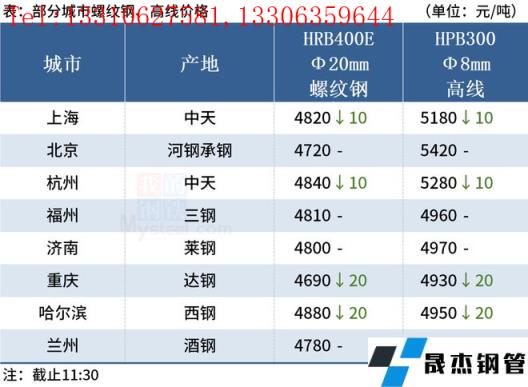 ◎重慶:10日早盤建材市場價(jià)格跌20,現(xiàn)達(dá)鋼螺4640、盤4910,永航螺4630、盤4890,瀘鋼螺4630、盤4890。(單位:元/噸)