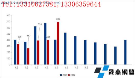 近期我國大部分區(qū)域已經(jīng)開始逐步解除疫情封控,對于前期因疫情導(dǎo)致的運輸受阻基本暢通,因此前期因運輸導(dǎo)致的延遲發(fā)貨在5月份已經(jīng)有所體現(xiàn),預(yù)計6月份仍有部分推遲訂單陸續(xù)發(fā)出,因此6月份我國厚壁無縫鋼管出口或?qū)⒗^續(xù)呈現(xiàn)增勢,由于訂單縮減,7月份起我國厚壁無縫鋼管出口量或?qū)㈤_始逐漸低迷,回歸正常至500萬噸左右的出口量。