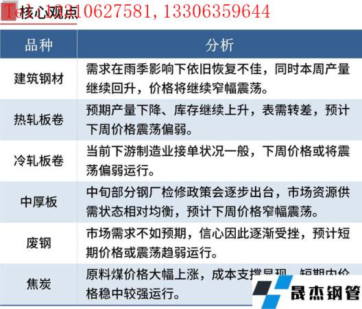 建筑厚壁無縫鋼管:6月10日,全國31個(gè)主要城市20mm三級(jí)抗震螺紋鋼均價(jià)4821元/噸,較上個(gè)交易日下跌17元/噸。短期來看,目前市場需求在雨季影響下依舊恢復(fù)不佳,同時(shí)本周產(chǎn)量繼續(xù)回升,高爐產(chǎn)能維持,供需仍然呈現(xiàn)雙弱格局。因此在下游需求難以回暖的狀態(tài)下,預(yù)計(jì)下周國內(nèi)建筑厚壁無縫鋼管價(jià)格或?qū)⒗^續(xù)窄幅震蕩為主。
