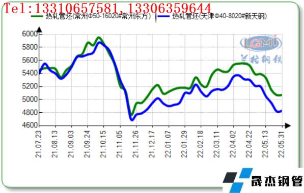 圖2 2021-2022年南北方樣本無(wú)縫無(wú)縫鋼管廠(chǎng)家20#熱軋管坯價(jià)格走勢(shì)圖
