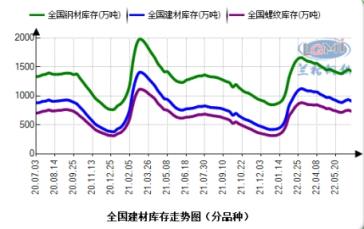 據(jù)云商平臺監(jiān)測數(shù)據(jù)顯示:2022年6月24日,全國厚壁鋼管社會庫存指數(shù)為154.9點(diǎn),比上月上升2.50%,比去年同期上升10.92%;其中建材社會庫存指數(shù)為221.1點(diǎn),比上月上升1.43%,比去年同期上升16.58%;螺紋鋼社會庫存量為734.59萬噸,比上月上升1.83%,比去年同期上升15.38%;伴隨著無縫鋼管廠家部分檢修減產(chǎn),及需求的緩慢釋放,庫存上升勢頭開始有所放緩,臨近月末開始由升轉(zhuǎn)降。