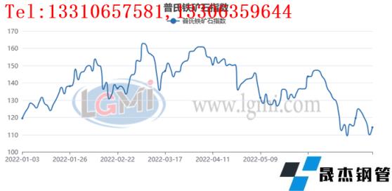 6月份以來(lái),伴隨著國(guó)內(nèi)厚壁鋼管價(jià)格的大幅下挫,進(jìn)口鐵礦石市場(chǎng)也出現(xiàn)了明顯的下跌行情,截至7月5日,普氏鐵礦石指數(shù)跌到了114.3點(diǎn),較6月初的高點(diǎn)(147.3點(diǎn))下跌了22.4%,也創(chuàng)下了年內(nèi)的最大單月跌幅(詳見圖1)。