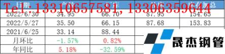 焊鍍管庫存峰值顯著低于2021年同期水平。 據(jù)云商平臺(tái)監(jiān)測數(shù)據(jù)顯示,2022年焊鍍管廠商冬儲(chǔ)水平偏低,且繼春節(jié)累庫峰值后一路去庫。春節(jié)前后,焊鍍管廠原料儲(chǔ)備多至2月用量,加工類及協(xié)議貿(mào)易商整體庫存控制在15-20天銷量左右,儲(chǔ)貨量在正常庫存的10%-30%之間。截至6月30日數(shù)據(jù),在統(tǒng)計(jì)管廠總庫存66.7萬噸,比年初高點(diǎn)86.22萬噸降19.52萬噸,下降22.64%;比上年同期降23.6萬噸,下降26.14%。國內(nèi)在統(tǒng)計(jì)焊管社會(huì)庫存87.95萬噸,較年初下降1.59%,降庫速度遠(yuǎn)低于往年。