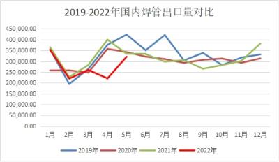 圖4 2019-2022年國內(nèi)焊管出口量對(duì)比
