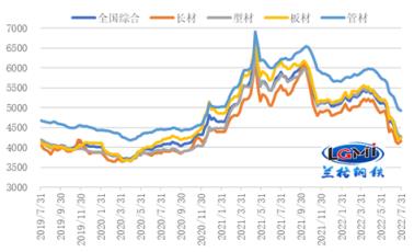 但隨著7月份需求有所回落,企業(yè)生產經營活動放緩,經濟回升動力偏弱。中國物流與采購聯(lián)合會、國家統(tǒng)計局服務業(yè)調查中心發(fā)布的2022年7月份中國制造業(yè)采購經理指數(PMI)為49.0%,比上月回落1.2個百分點。7月份PMI指數再度回落至榮枯線之下,表明經濟運行受多地高溫多雨短期季節(jié)性影響有所波動,疊加國內疫情仍呈散發(fā)態(tài)勢,外部形勢更趨復雜嚴峻,市場需求有所承壓,后期板材需求或承壓恢復。