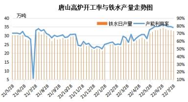 圖2唐山高爐開工率與鐵水產(chǎn)量走勢圖
