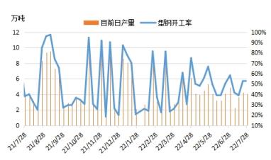 圖6 唐山型鋼開工率及日產(chǎn)量走勢圖