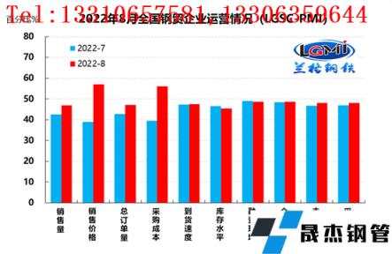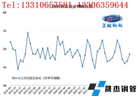 云商平臺統(tǒng)計(jì)發(fā)布的2022年8月份厚壁無縫鋼管流通業(yè)PMI總指數(shù)為48.6%,比上月上升1.9個(gè)百分點(diǎn),在收縮區(qū)間內(nèi)持續(xù)回升。從分類指數(shù)看,構(gòu)成厚壁無縫鋼管流通業(yè)